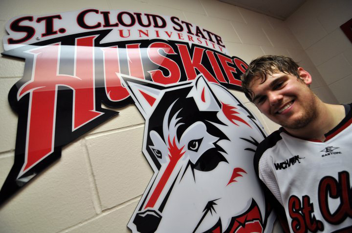 The announcer, a former Pittsburgh weathercaster, says Drew’s name. And the St. Cloud State fans roar.