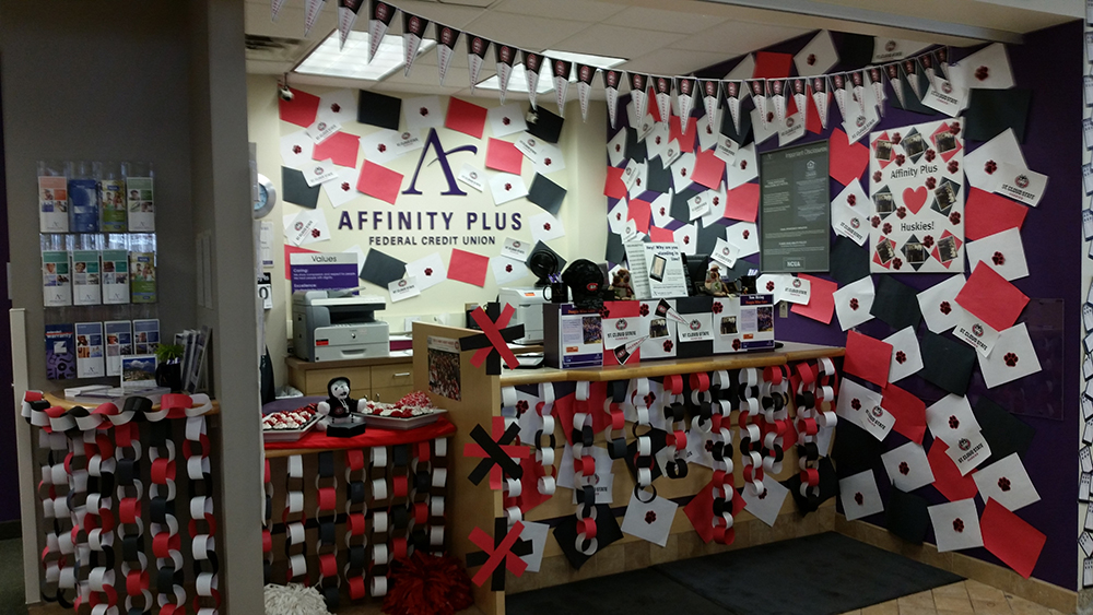 Participants in the Celebrate! Huskies Spirit Challenge office decorating contest show their Huskies pride during winter Celebrate! St. Cloud State 2015. Fifteen on campus entities and nine local businesses participated in the contest.