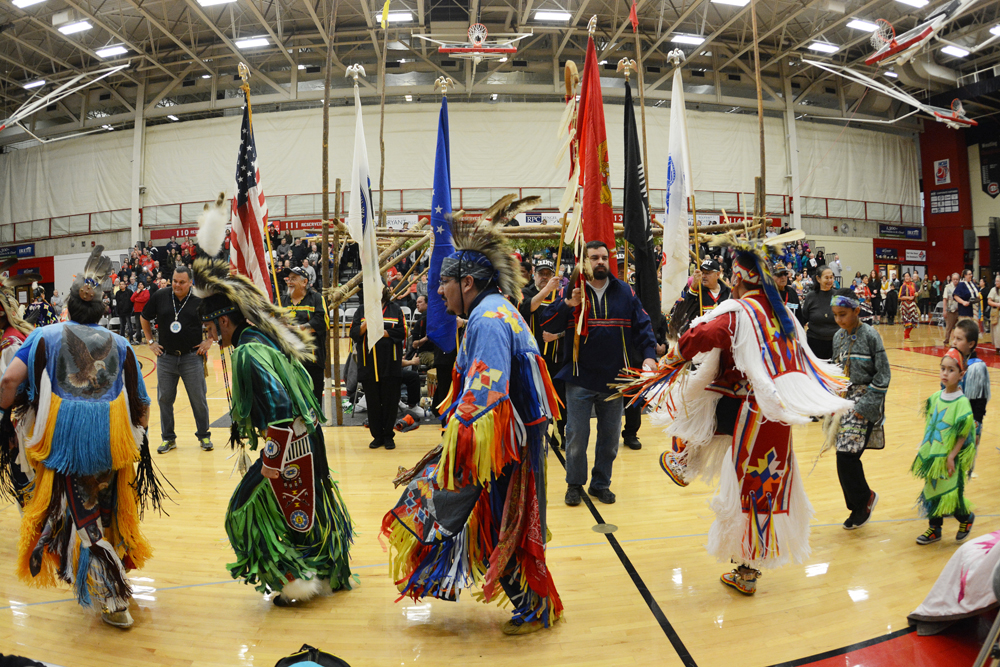 Hundreds of spectators gathered in Halenbeck Hall on April 9 to show respect and commemorate the Grand Entry opening event for the for the 22nd annual Pow-Wow hosted by St. Cloud State’s American Indian Center.