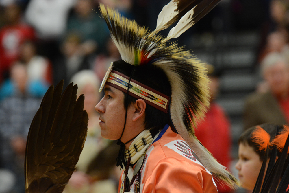 Hundreds of spectators gathered in Halenbeck Hall on April 9 to show respect and commemorate the Grand Entry opening event for the for the 22nd annual Pow-Wow hosted by St. Cloud State’s American Indian Center.