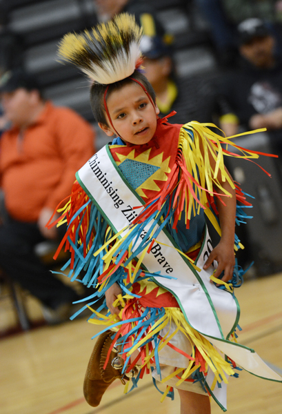A young dancer participates in the Grand Entry.