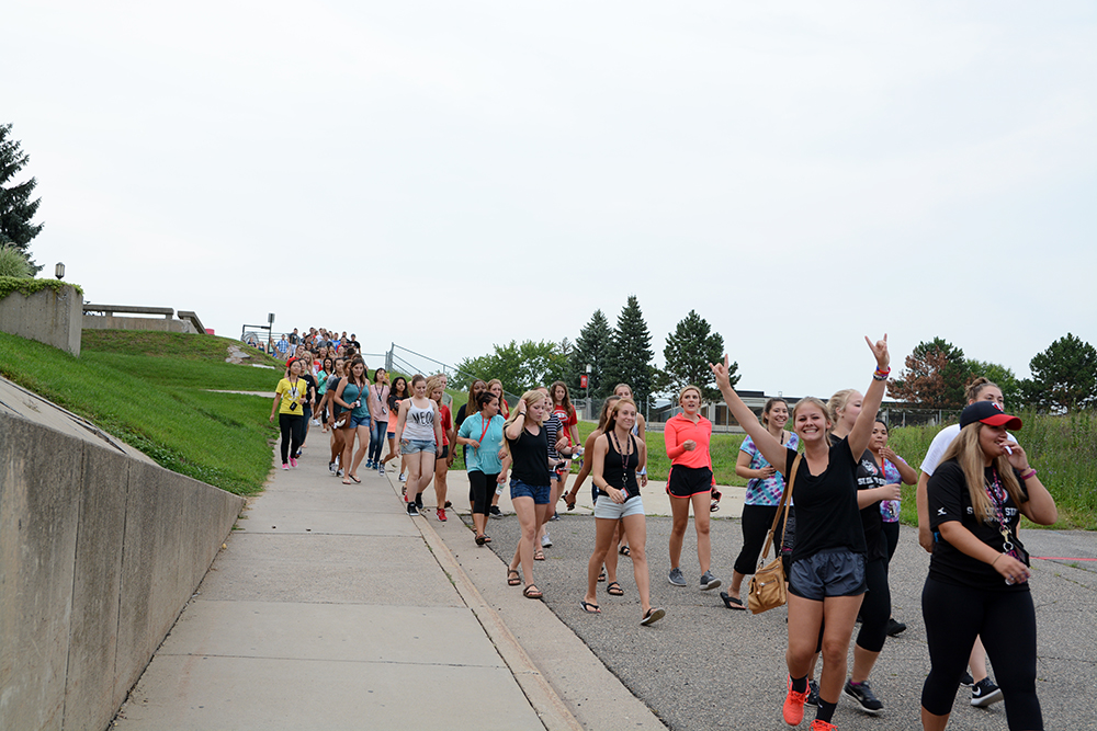 More than 1,200 new and transfer students gathered at Husky Stadium for orientation games and a group photo. More than 1,100 of them stuck around to be greeted by Interim President Ashish Vaidya, St. Cloud Mayor Dave Kleis ’89 and Student Government Leaders Mikaela Johnson and Randall Olson.