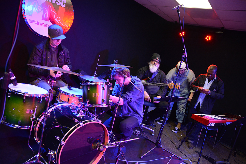 Students prepare the studio for a Monday Night Live performance by Waayaha Cusub.