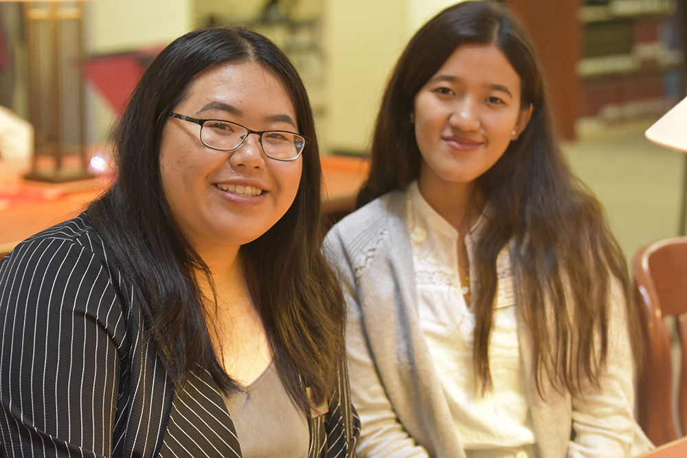 (L to R): SCSU student ambassadors, Stacy Yang and Diya Shresta.