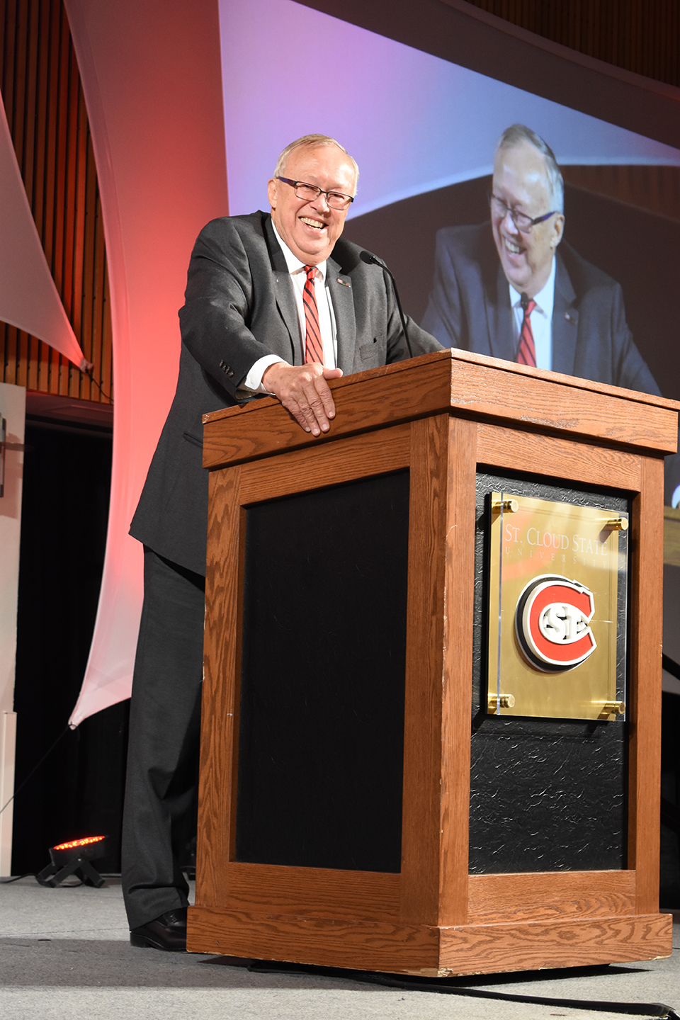 Dr. Lowell Hellervik ’56 was honored as the Foundation’s 2018 Visionary Award Honoree for his commitment to St. Cloud State faculty. Hellervik, whose philanthropy established the coveted Hellervik Prize for faculty research, has sought to elevate pride and celebrate faculty accomplishments within the SCSU’s faculty community.