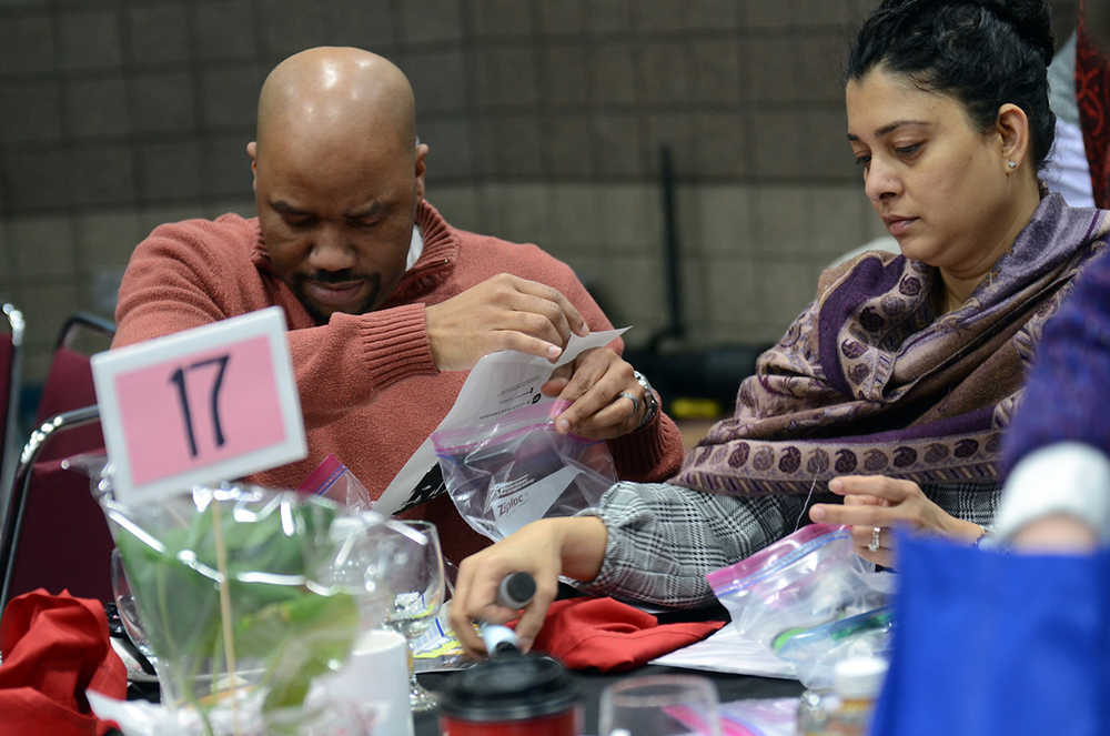 Dr. Christopher Lehman puts together a care package.