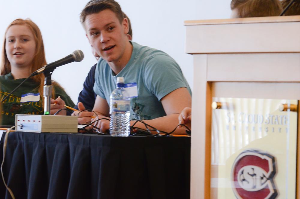 The School of Public Affairs at St. Cloud State University hosted nearly 100 area high school students and their coaches at the MN Heartland Economics Challenge March 22.