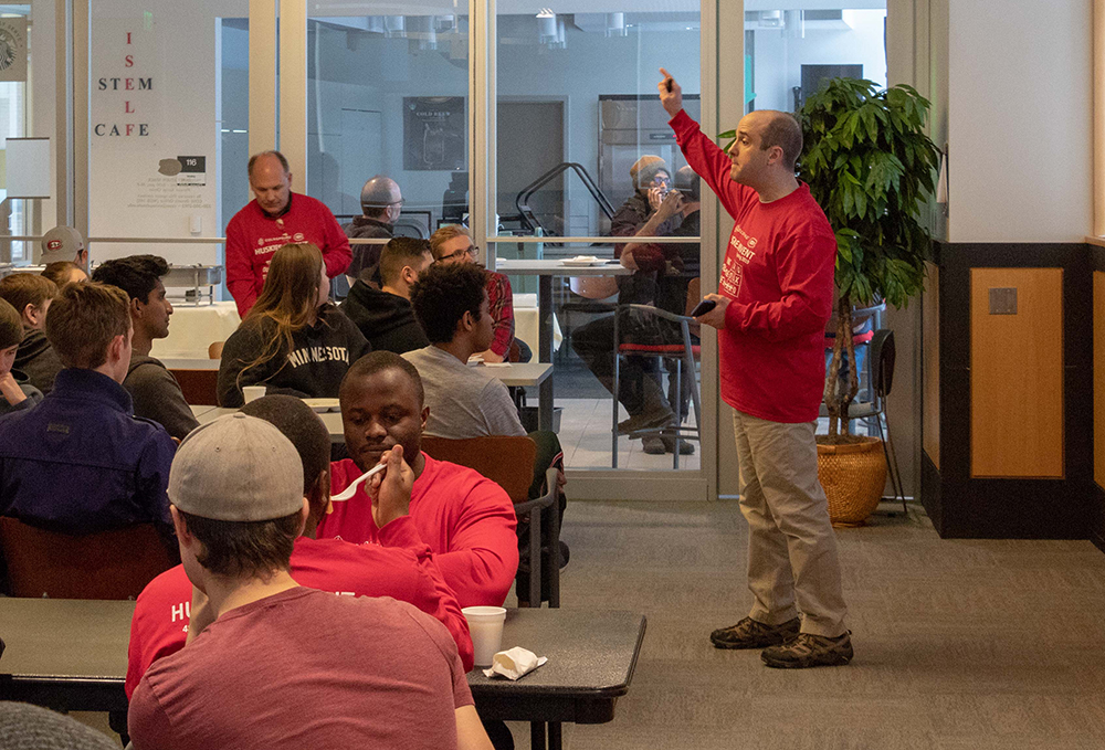 Communications Studies Professor Matt Vorell gives students a presentation on the fundamentals and key concepts of group presentations during lunch Sunday. Sam Joyce, technology education major