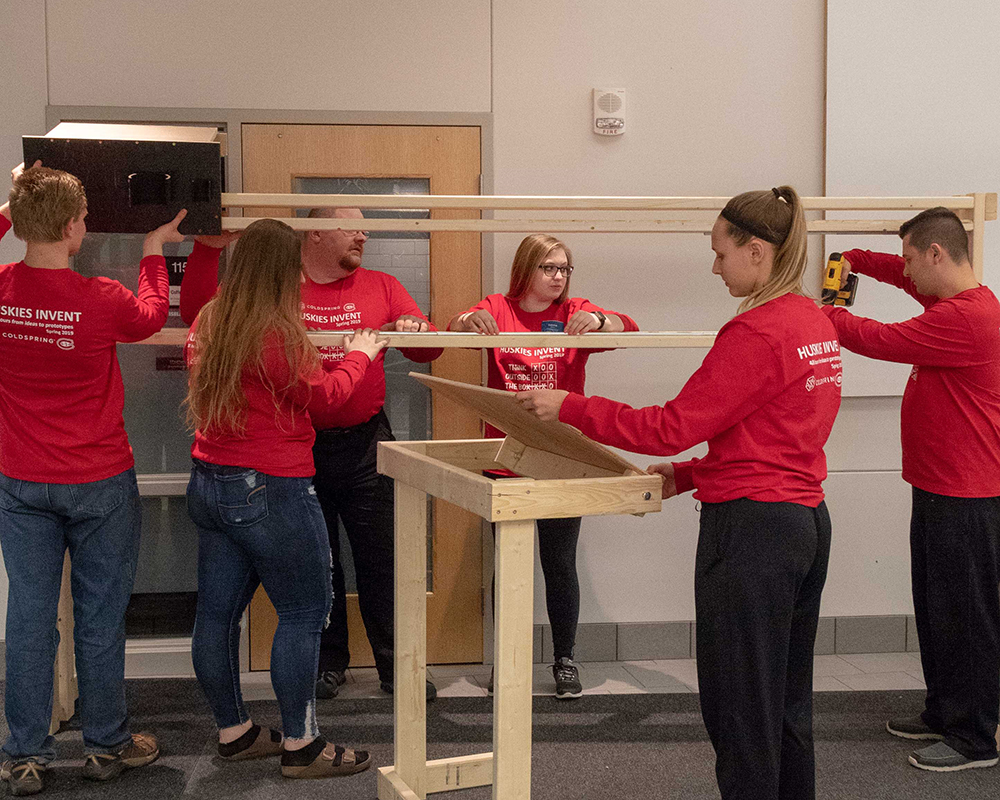 A Huskies Invent team works on its prototype during St. Cloud State's Spring 2019 Huskies Invent. Sam Joyce, technology education major