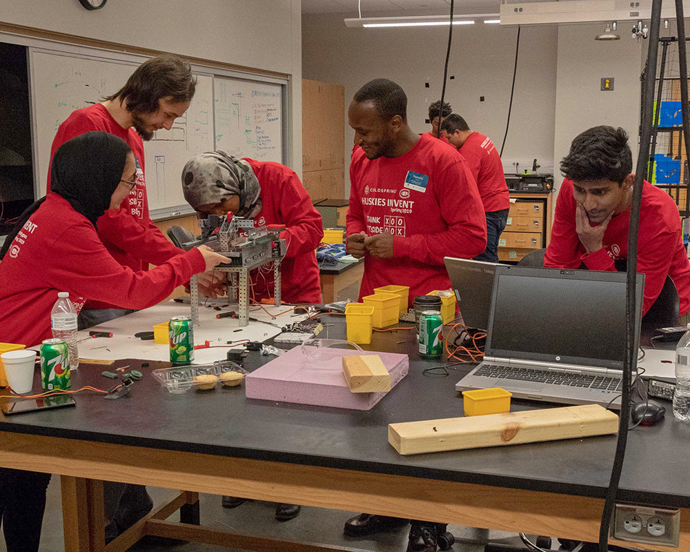 College of Science and Engineering buildings were open round the clock for students to use equipment and prototyping and fabrication labs as they came up with their solutions and the prototypes of their ideas. Mentors from Coldspring and faculty from a variety of disciplines served as support through it all.