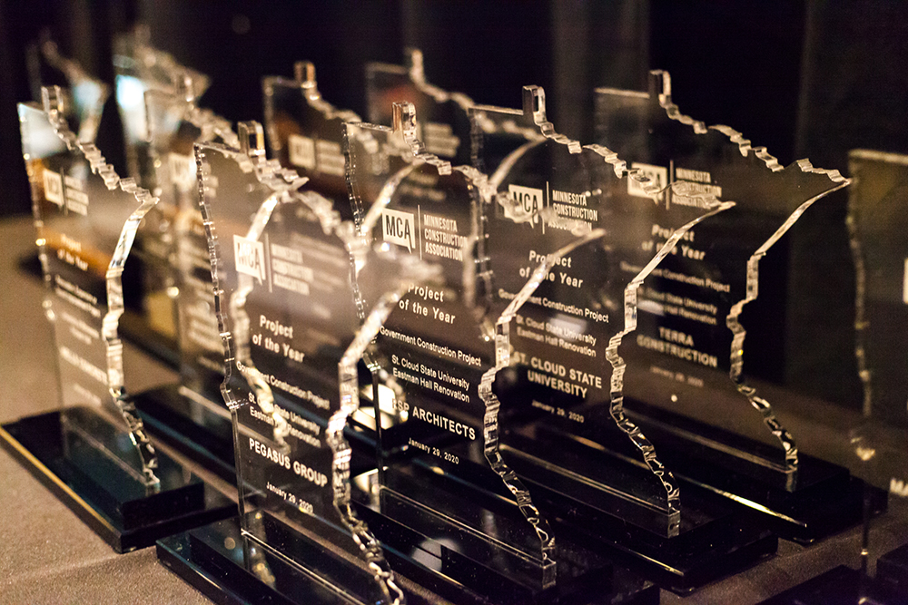 The team that planned and completed the renovation of Eastman Hall included representatives from St. Cloud State University, Terra Construction and RSP Architects, who accepted the award Jan. 29 at the Minnesota Construction Association 25th Annual Awards of Excellence Gala. Photo courtesy of Jake Anderson, Terra Construction