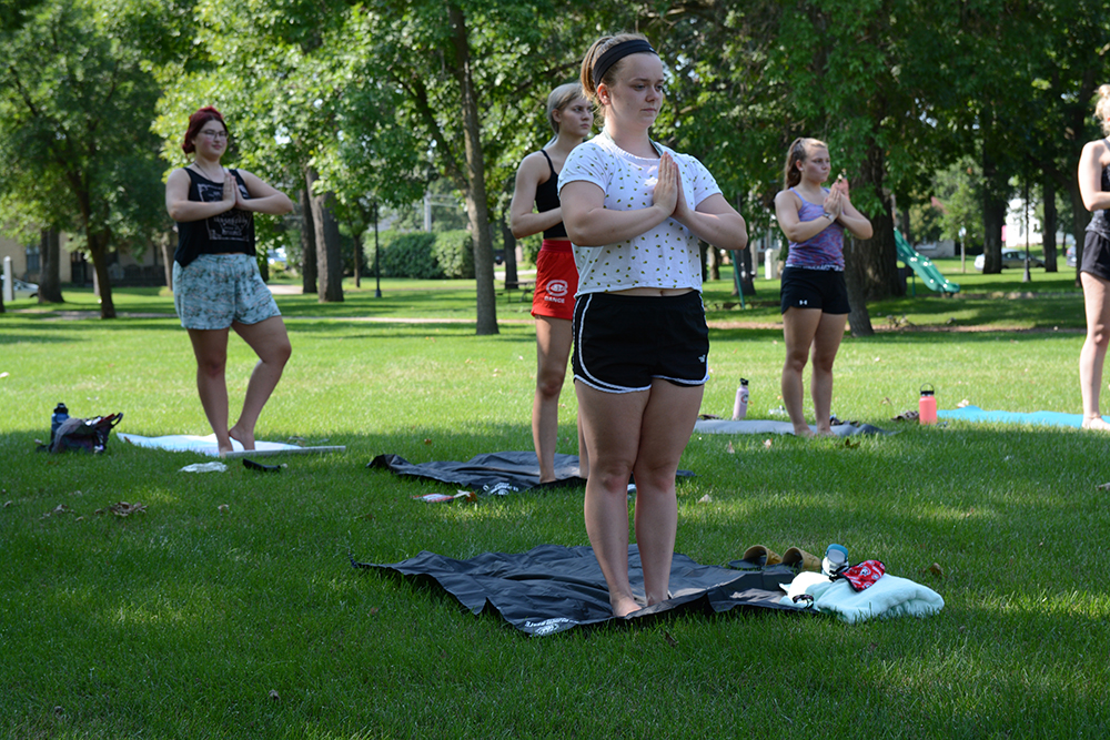 Students participate in an Outdoor Yoga Class in Barden Park.